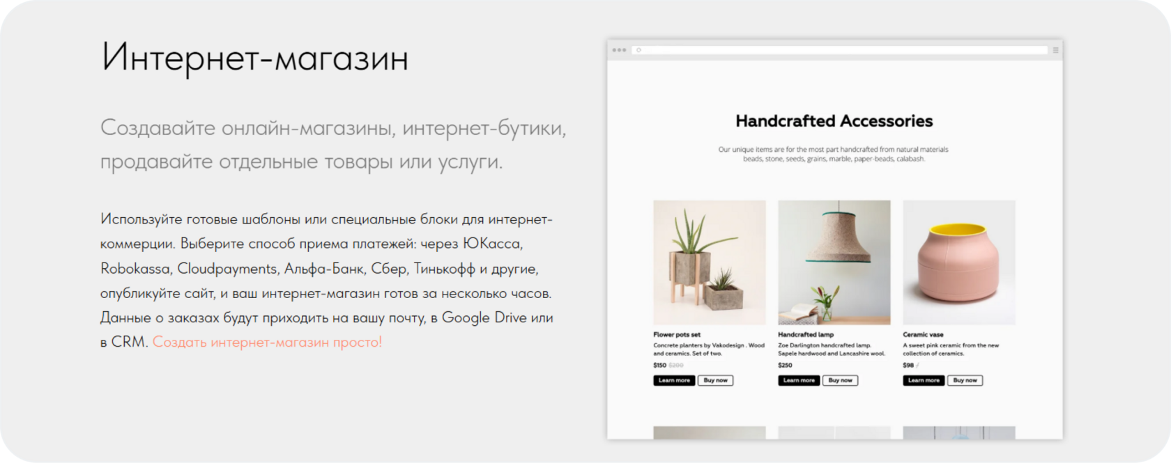 Конструктор интернет-магазинов Craftum подходит для сборки не только онлайн-магазинов, но и портфолио, посадочных страниц, визиток, корпоративных сайтов и других проектов.
