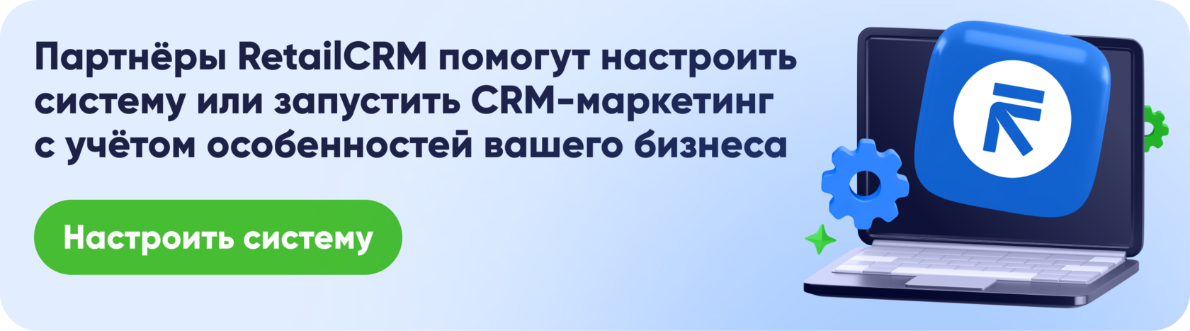 Адаптировать RetailCRM под свои задачи поможет наш партнёр Radis. Запишитесь на бесплатную консультацию — специалист подберёт нужные интеграции и расскажет, как лучше настроить процессы в RetailCRM.