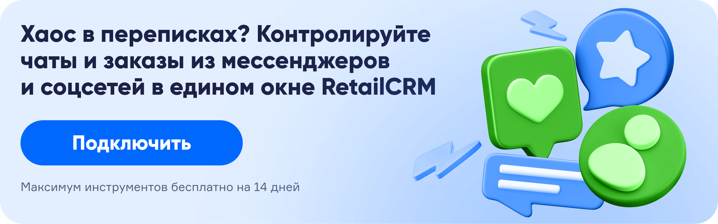 RetailCRM помогает объединить общение в мессенджере с системой продаж: автоматизировать переписку, сегментировать клиентов и не терять ни одного обращения. Так вы сможете не просто продавать, но и выстраивать настоящие отношения с аудиторией.