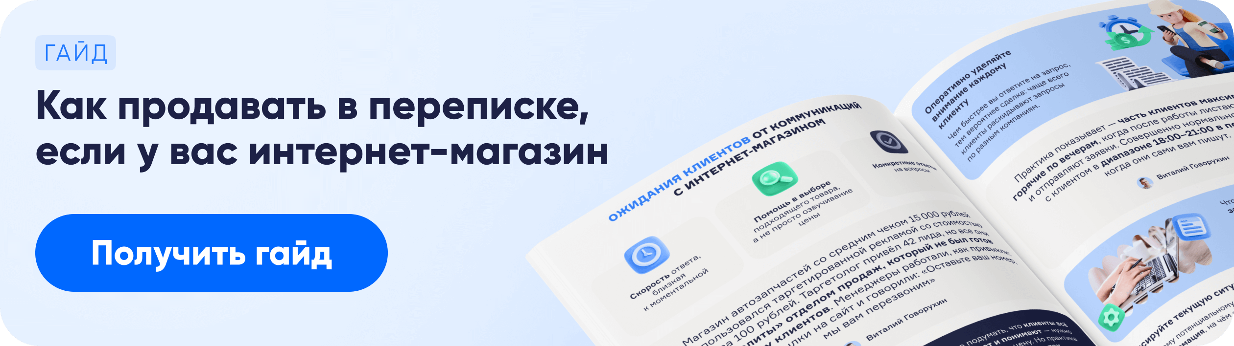 Чтобы выстроить эффективное общение в мессенджерах, читайте наш гайд по продажам в переписке. В нём подробно описано, как строить диалог, сохранять живой тон общения и при этом повышать конверсию.