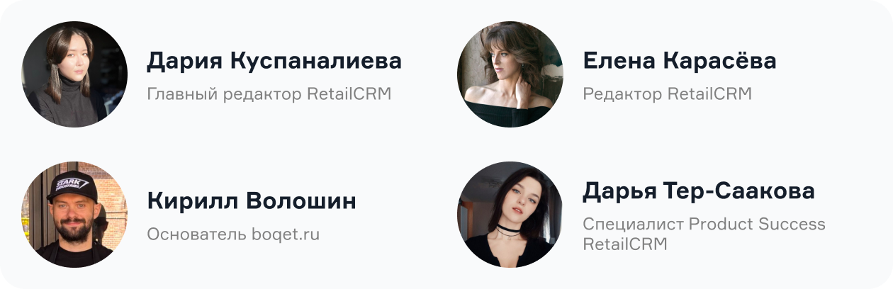 У нас появилась своя культура работы с инструментами RetailCRM. Мы научились работать с разными типами обращений, графиками, сменами, настроили передачу заявок между сменами и так далее. Думаю, мы уже хорошо освоили CRM. При этом есть большая часть функционала, которую хотим настроить и использовать в будущем».Кирилл Волошин, основатель boqet.ru