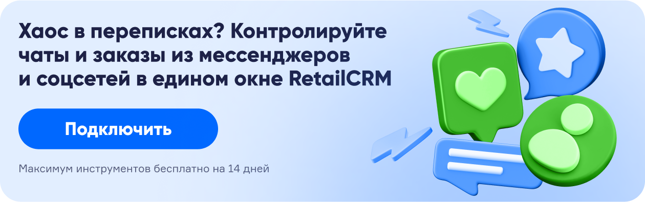 Главная задача, которую планировали решить с помощью CRM — перестать терять заявки. Когда у компании много разных точек коммуникации с клиентами, она неизбежно сталкивается с проблемой упущенных заказов. Решение здесь одно — объединить несколько каналов и управлять ими в одном окне. В boqet.ru именно так и поступили и подключили к RetailCRM:
