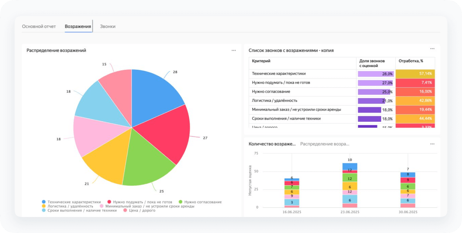 Команда получила дашборды по каждому менеджеру и группе. Сразу стало видно, где сотрудники чаще всего ошибаются — например, не уточняют детали заказа или не работают с возражениями. Это позволило быстро корректировать скрипты и сценарии обучения.
